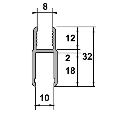 Perfil de conexión de puerta Aqua para conectar el perfil para puerta Aqua y Aqua light con un panel lateral de vidrio fijo. Sólo apto para vidrio de 8 mm