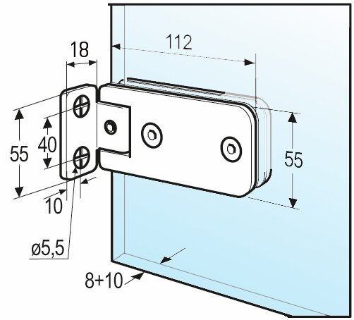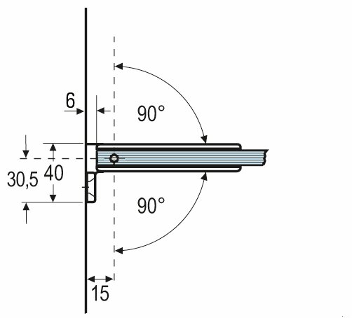 La bisagra Granada para puertas de ducha de batientes a 90° en vidrio-pared tiene una capacidad de carga de 35 kg. Para puertas de hasta 0,9 x 2 m. El montaje a 90° en vidrio-pared con conexión a una cara a la pared permite montar una puerta de vidrio en la pared