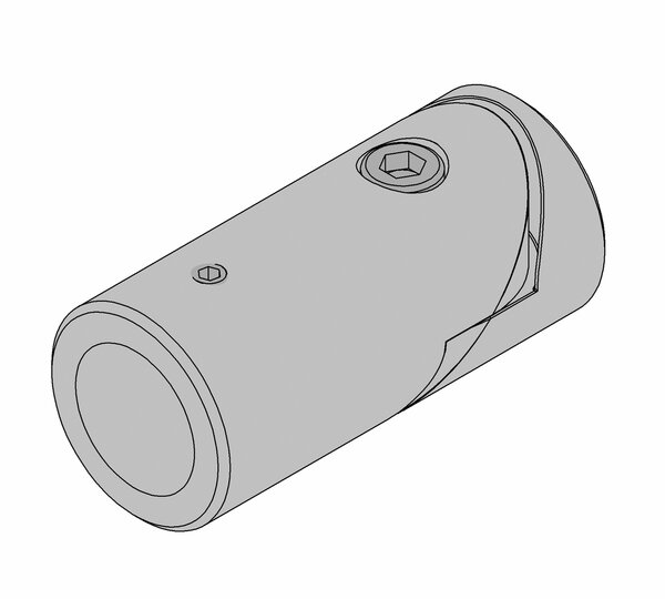 Conector a pared ajustable para conectar la barra estabilizadora Round 19 a una pared fija. Su diseño en dos partes permite un ajuste continuo del ángulo.