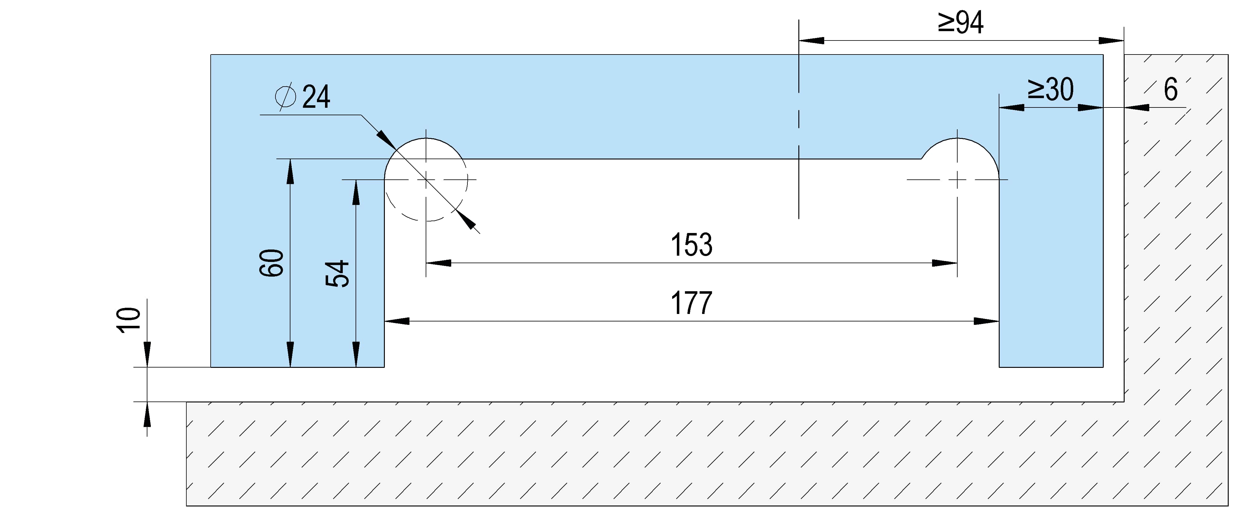 No se recomienda su uso con vidrios de seguridad laminados. Debido al escaso grosor de los vidrios individuales y a la carga puntual resultante en la zona del recorte del vidrio al apretar los tornillos, puede romperse el vidrio.