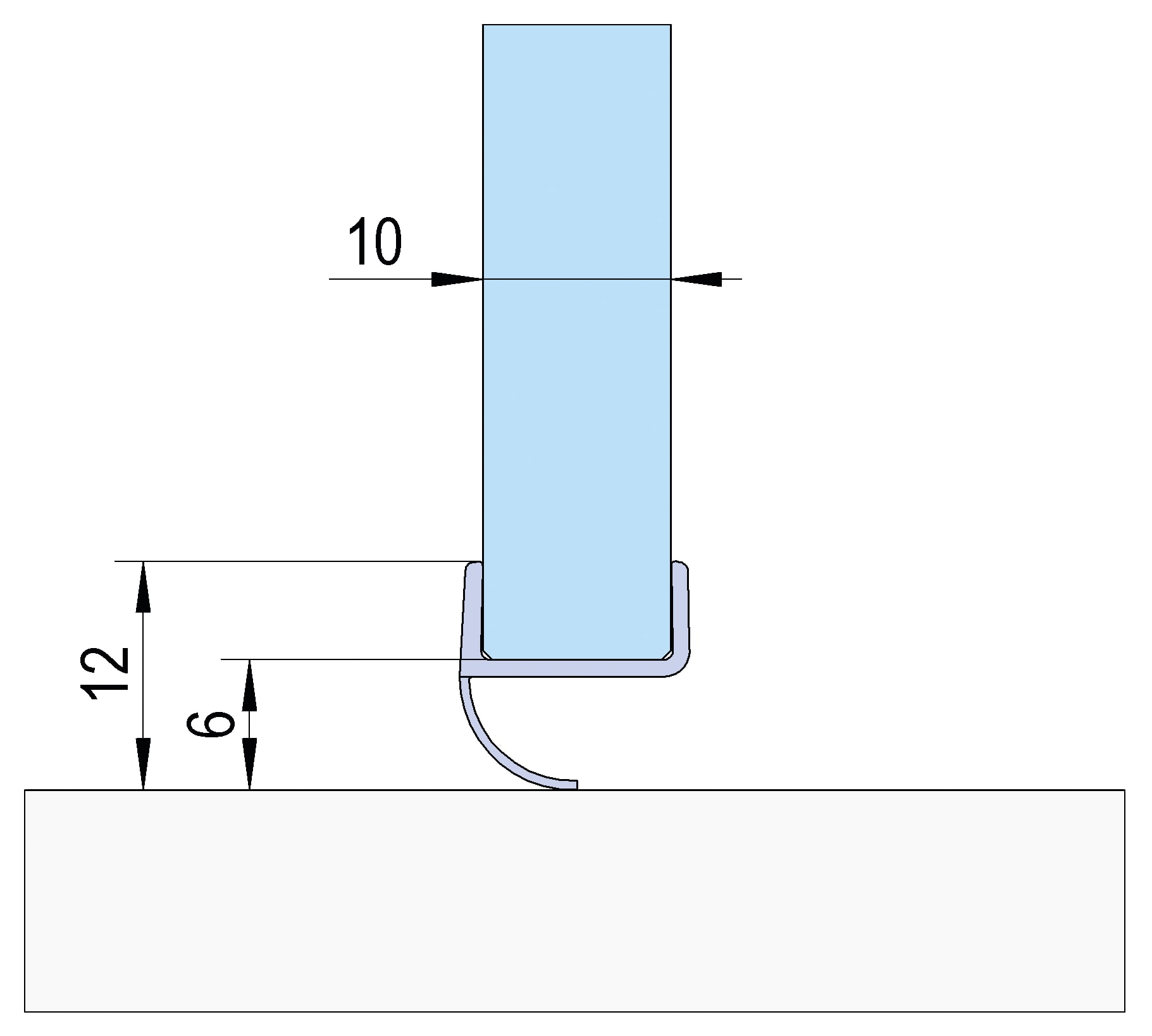 Las juntas para puertas de ducha con labio de estanqueidad abierto son adecuadas tanto para el lado de la manilla como para el de las bisagras, utilizándose principalmente en puertas con tope por su forma asimétrica. La junta se inserta simplemente en el borde del cristal.