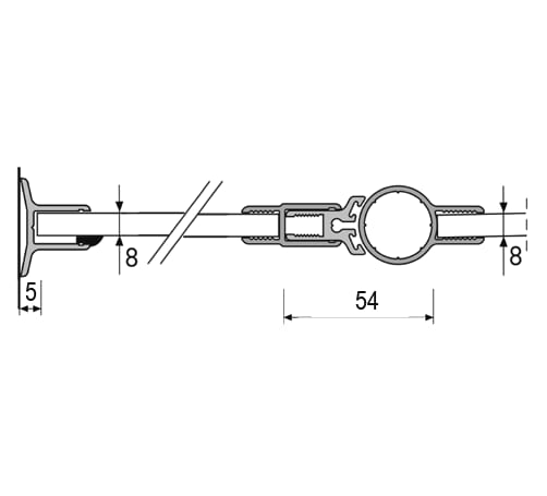 Kit de perfiles Aqua compuesto por perfil de conexión de puerta, perfil adicional para conexión a pared y perfil de goma. Conecta el perfil para puerta Aqua o Aqua light con un panel lateral de vidrio fijo. Solo apto para vidrio de 8 mm.
