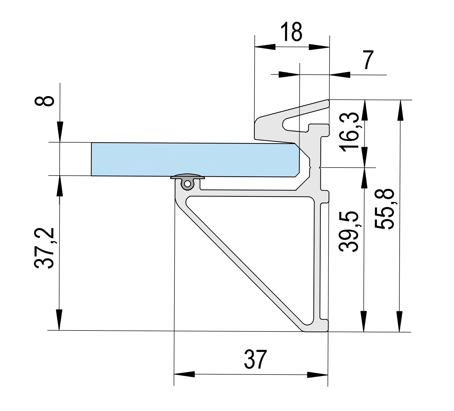 El diseño de los perfiles de soporte para estantes de vidrio permite ajustar fácilmente la inclinación del panel de vidrio, modificando la profundidad de inserción y alinearlo exactamente en horizontal. Nuestros perfiles de soporte para estantes de vidrio están disponibles en acabados de color aluminio anodizado y efecto acero inoxidable. También se puedelegir entre diferentes longitudes.