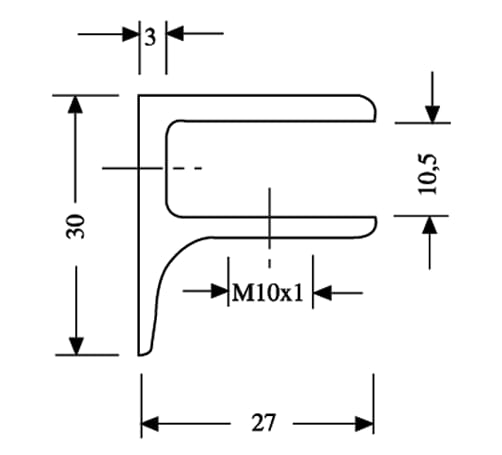 Soporte para estantes de vidrio fabricado en diversos materiales, como acero inoxidable o fundición inyectada de cinc, en diferentes tamaños. La prolongación del soporte mural hacia abajo aumenta notablemente la estabilidad. Una abrazadera ajustable individualmente impide de forma segura que las estantes de vidrio se salgan.