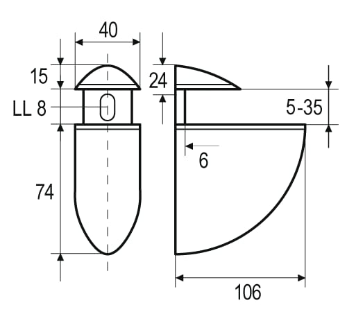 Elegantes soportes redondeados para estantes de vidrio, fabricados en zinc fundido a presión, disponibles en diferentes tamaños y acabados. La generosa sujeción, ajustable individualmente, evita que las estantes de vidrio se salgan y también permite sujetar estantes de madera.