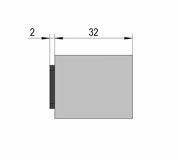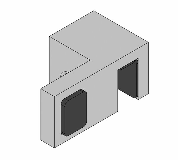Los topes de puerta para el incorporación a posteriori de acristalamientos a 90° se fijan en el borde superior del acristalamiento de la hoja lateral fija. Evitan que la puerta sea empujada en una dirección.