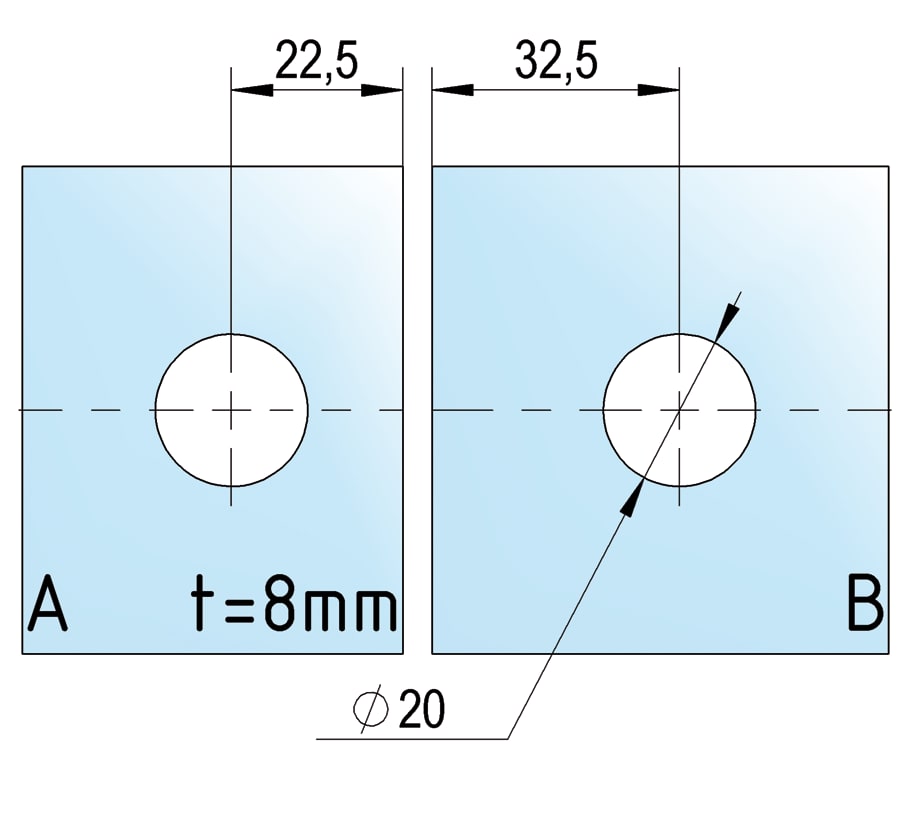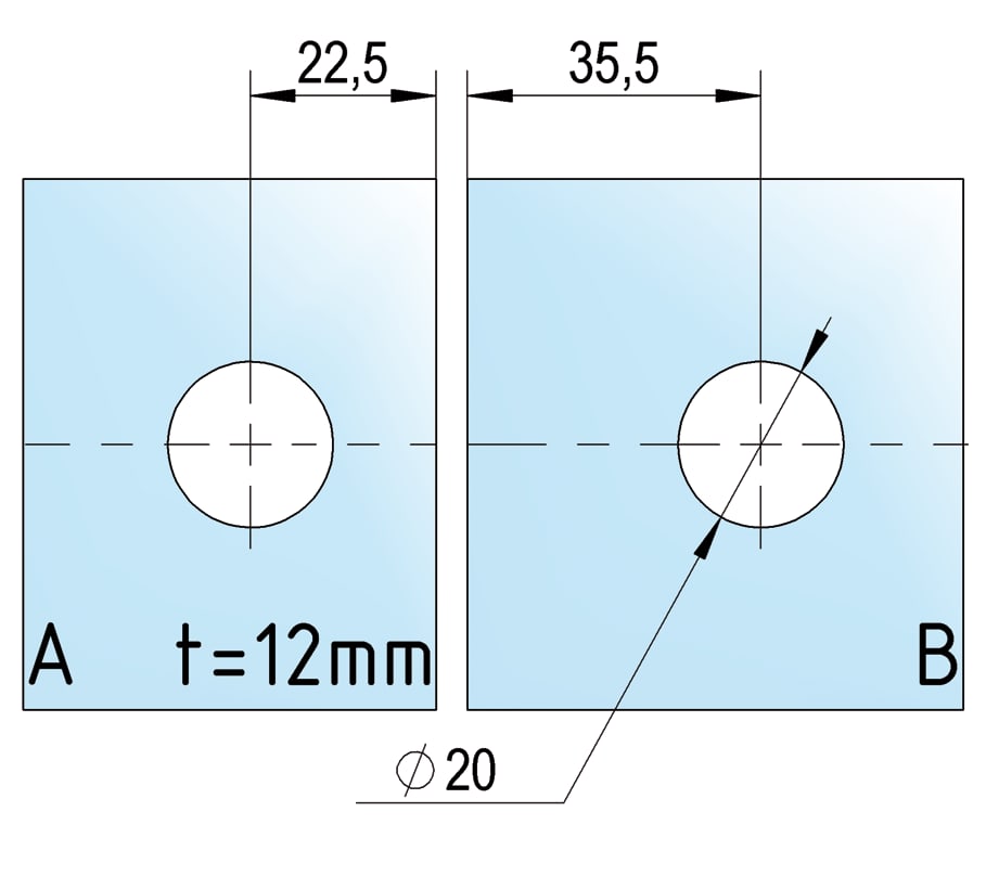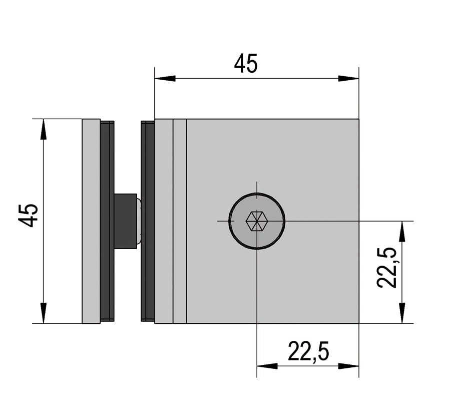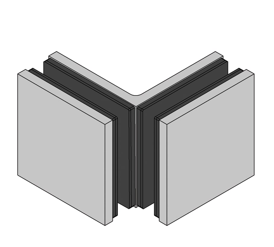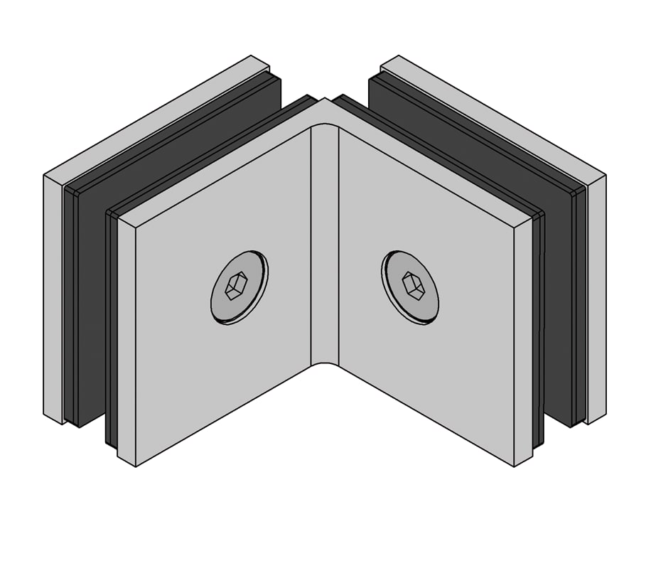 Bilbao Select unión angular a 90° en vidrio-vidrio para conectar dos paneles laterales de vidrio fijos. Para ello sólo se precisan unos simples orificios en los cristales.
