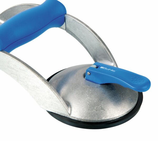 Ventosa de calidad Veribor® con asa en cruz para transportar y elevar cargas diversas de hasta 70 kg. Las ventosas son adecuadas para transportar todas las superficies estancas al gas.