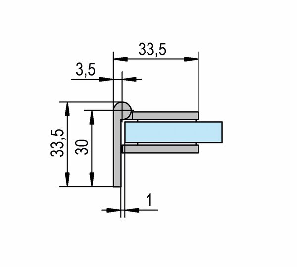 Bisagras de latón Vitreasy para muebles que facilitan la fijación de puertas de vidrio, p. ej., a paneles laterales de madera de vitrinas o armarios. Disponibles en diferentes tamaños, con y sin procesado del vidrio.