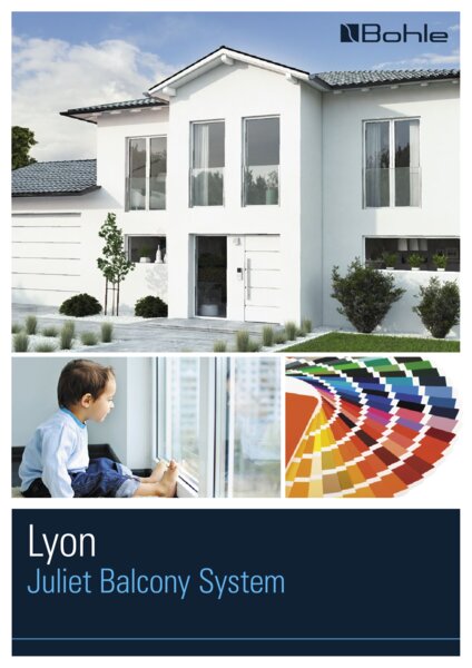 With only 4 fixing points on each side, the Lyon Juliet balcony is faster, easier and less expensive to fit. Also, just a single, anodised aluminium profile is required for front and side mounting, left or right side - simplicity itself. The type statics guarantee maximum planning reliability. Lyon is available in aluminium, white and anthracite. Other finishes are available on request. Lyon is available as a set in heights of 900, 1000 and 1100 mm. A self-adhesive stainless steel edge protector is available as an option.