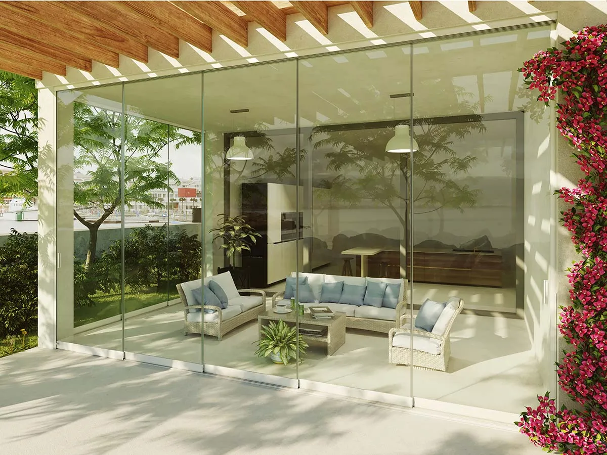 La sensación de estar al aire libre sin estarlo. ¿Cómo funciona? Con el nuevo sistema de puertas correderas guiadas por el suelo de Bohle.