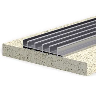 Aunque una versión de la carril está empotrada en el suelo, también puede instalarse una carril montada en superficie. Los perfiles de rampa crean transiciones sin barreras.