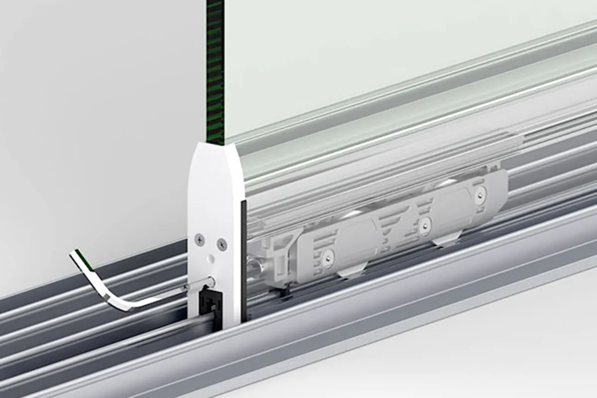Ya sea para el jardín privado o para un práctico tabique de terraza : con FloorTrack, usted crea un tabique móvil y transparente que separa con elegancia las zonas exteriores. Dependiendo de sus deseos, puede elegir entre dos rieles de suelo: mientras que una versión se empotra en el suelo, también se puede montar un riel de rodadura adosado. De tres a cinco elementos deslizantes con una anchura máxima de 1,30 m cada uno son posibles para una elegante mampara de cristal. Con FloorTrack pueden realizarse mamparas de cristal tanto estrechas como anchas: Por un lado, los perfiles de suelo pueden acortarse individualmente y, por otro, pueden unirse con la ayuda de elementos de unión para crear una anchura total de más de 10 metros.
