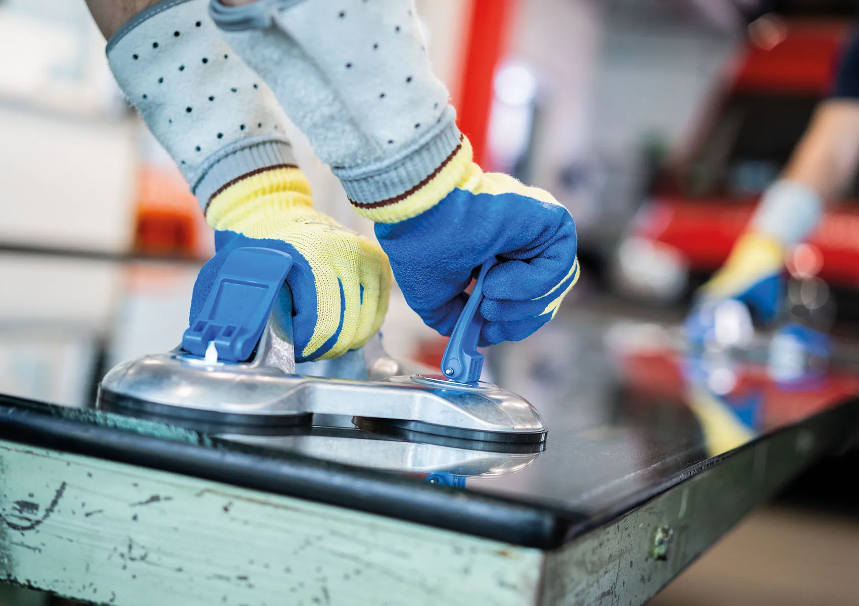 Los platos de succión, ahora más grandes, situados encima de los discos de goma distribuyen la presión de manera uniforme en la superficie, garantizando una seguridad aún mayor al elevar la carga. Una arandela optimizada situada debajo de la palanca proporciona mayor estabilidad durante su uso. El asa más ancha se adapta muy bien a la mano y se agarra cómodamente gracias a su posición elevada.