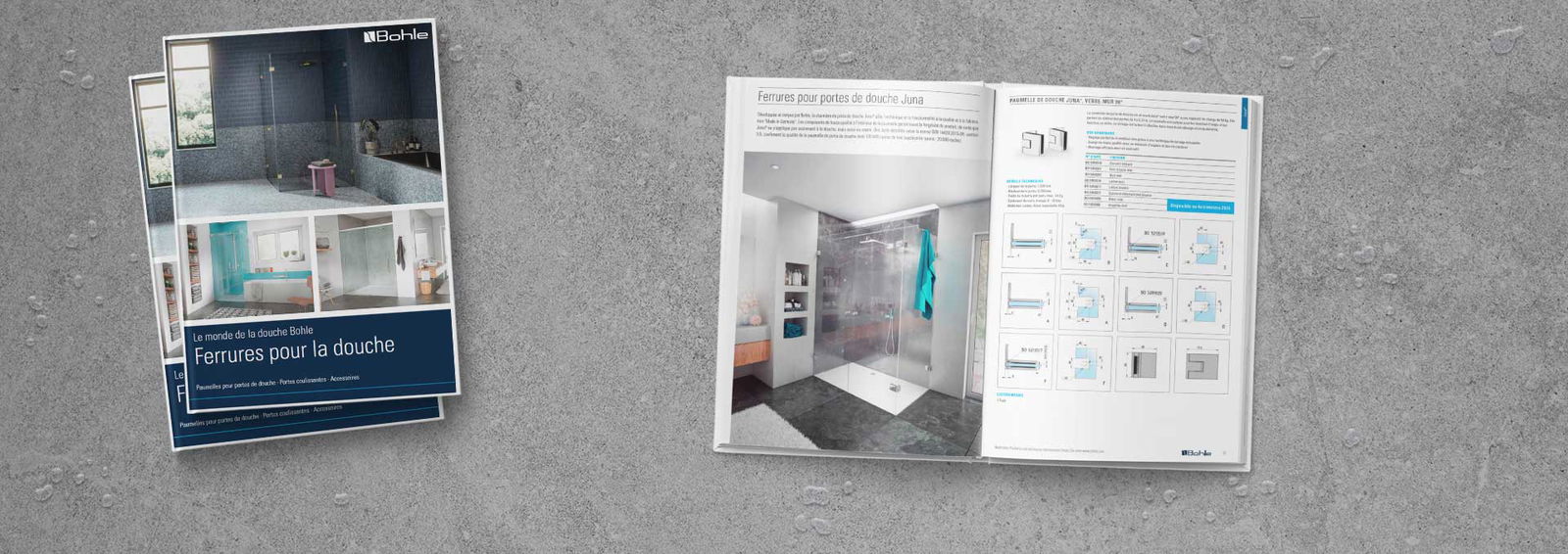 Le nouveau catalogue ferrures pour la douche vous permet de réaliser vos projets simplement et rapidement. Présenté de manière claire et doté d'aperçus de montage utiles, ce catalogue est l'outil idéal pour la planification de vos douches. Téléchargez dès maintenant la version en ligne et/ou commandez votre exemplaire papier pour le bureau.