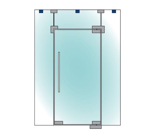 Le raccord verre-mur PT 90 est utilisé pour relier les parties latérales au mur dans une installation tout verre