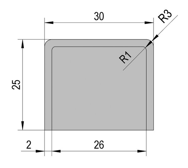 Cet embout permet une finition soignée de la main courante de 30 x 25 mm.