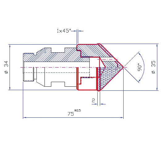 Le foret diamanté de 35 mm de diamètre possède un filetage extérieur R ½" (Continental).