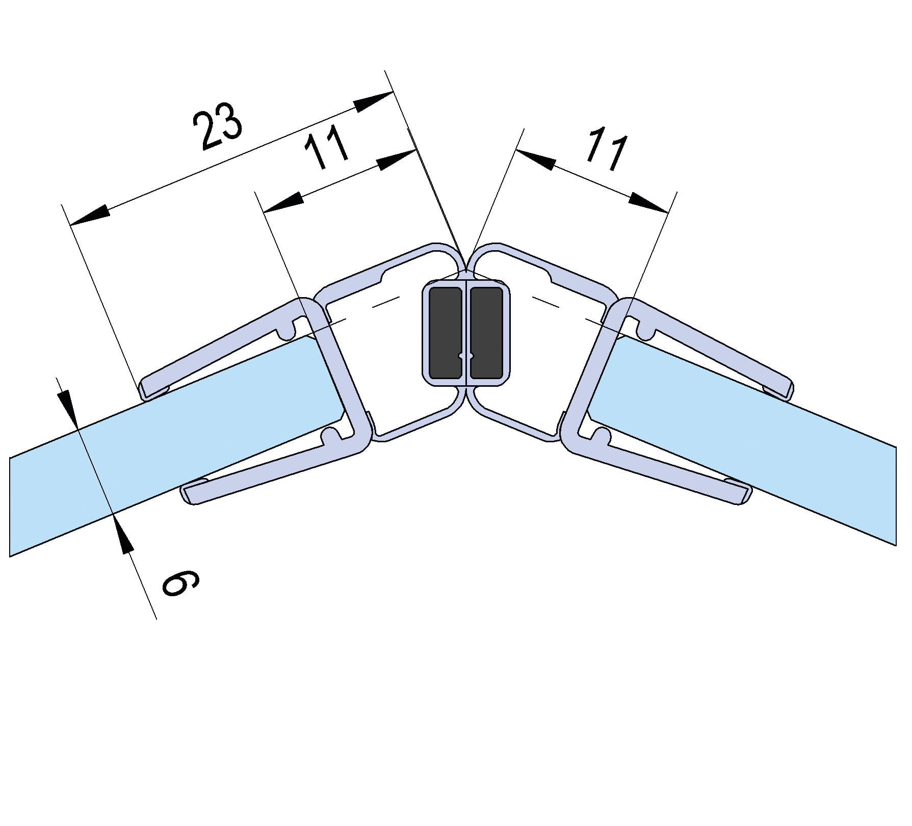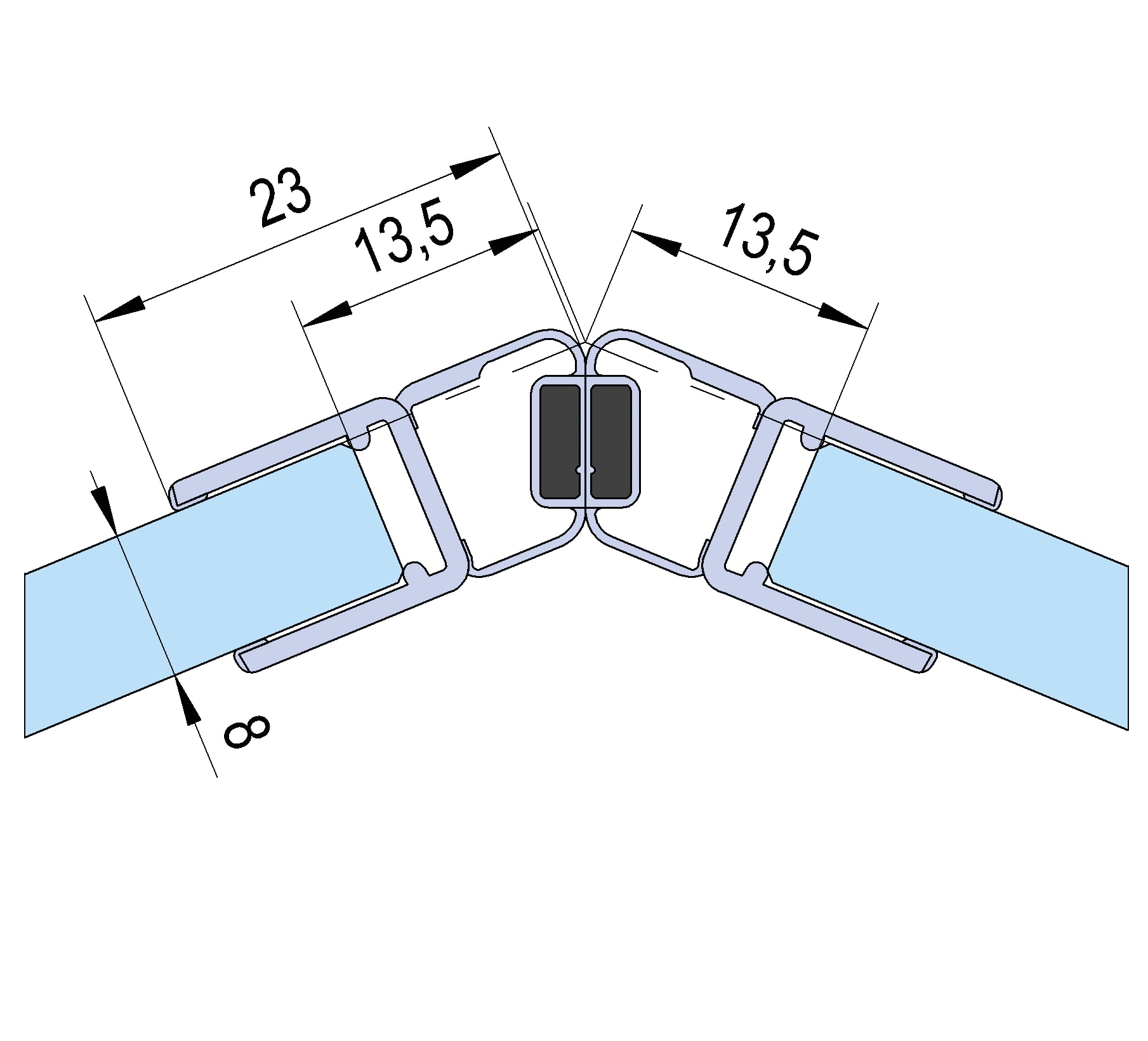 Ce joint de porte de douche avec profil magnétique à 135° convient pour une porte battante en combinaison avec un vitrage fixe. L'aimant assure un verrouillage sûr et facilite la fermeture de la porte.