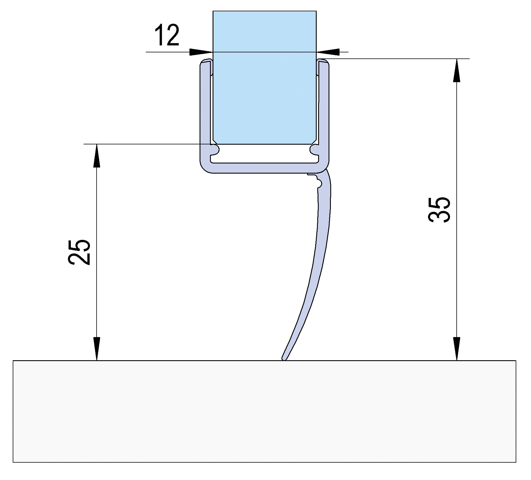 Les joints de porte de douche avec lèvre d'étanchéité simple conviennent aussi bien pour le côté charnières que pour le bas de porte et sont utilisés aussi bien pour les portes va-et-vient que pour les portes battantes. Le joint est simplement inséré sur le bord du verre.