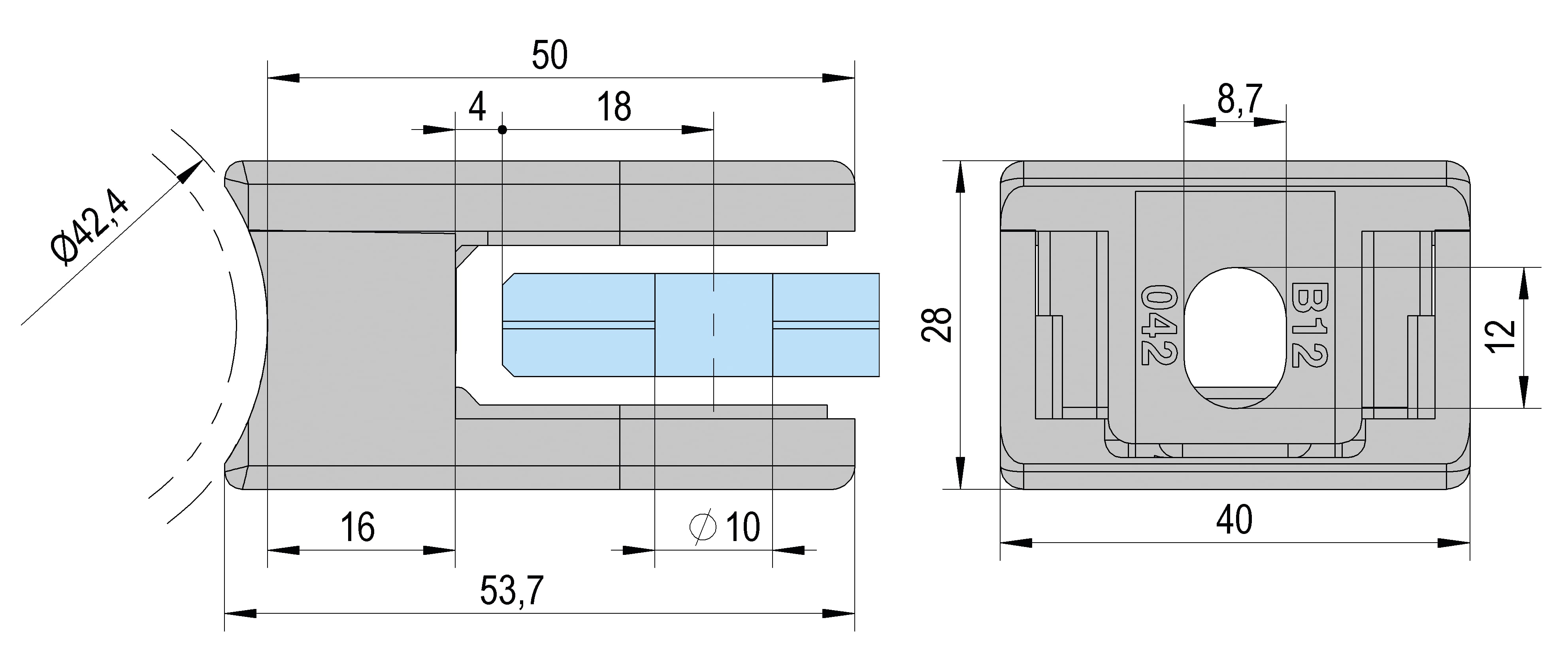 Powered by Smartsupp Patte de fixation demi-ronde 50 x 40 mm | Brossé | Acier inoxydable V2A | Pour tube rond Ø 42,4 mm | BO8712955