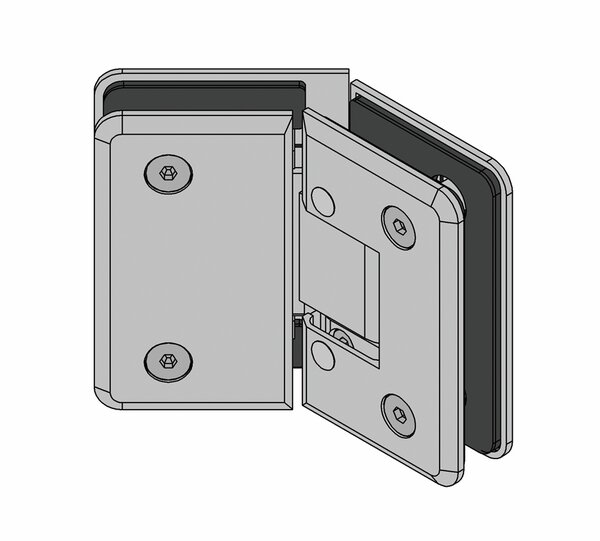 La paumelle de porte de douche va-et-vient Barcelona Select verre-verre 135° a une capacité de charge de 40 kg. Elle permet de réaliser des portes jusqu'à 1 x 2 m. La paumelle pour montage verre-verre 135° est par exemple conçue pour les douches pentagonales modernes et peu encombrantes.