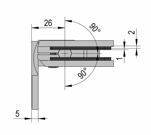 La paumelle de douche va-et-vient Bilbao Premium verre-mur 90° avec fixation murale d'un côté a une capacité de charge de 50 kg. Elle permet de réaliser des portes jusqu'à 1 x 2 m maximum. La paumelle permet de monter une porte pour les douches en niche classiques ou les douches d'angle à 90°.