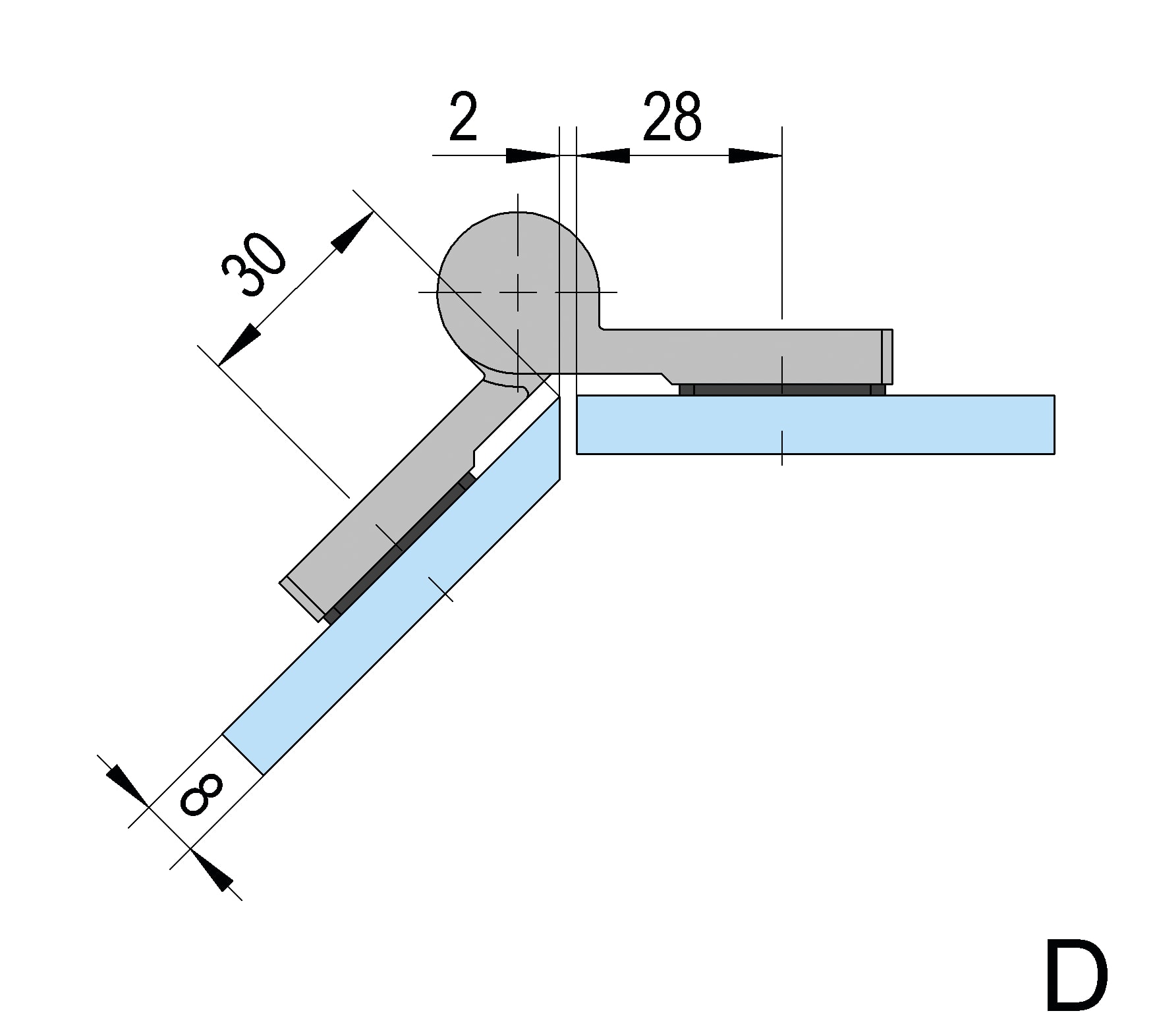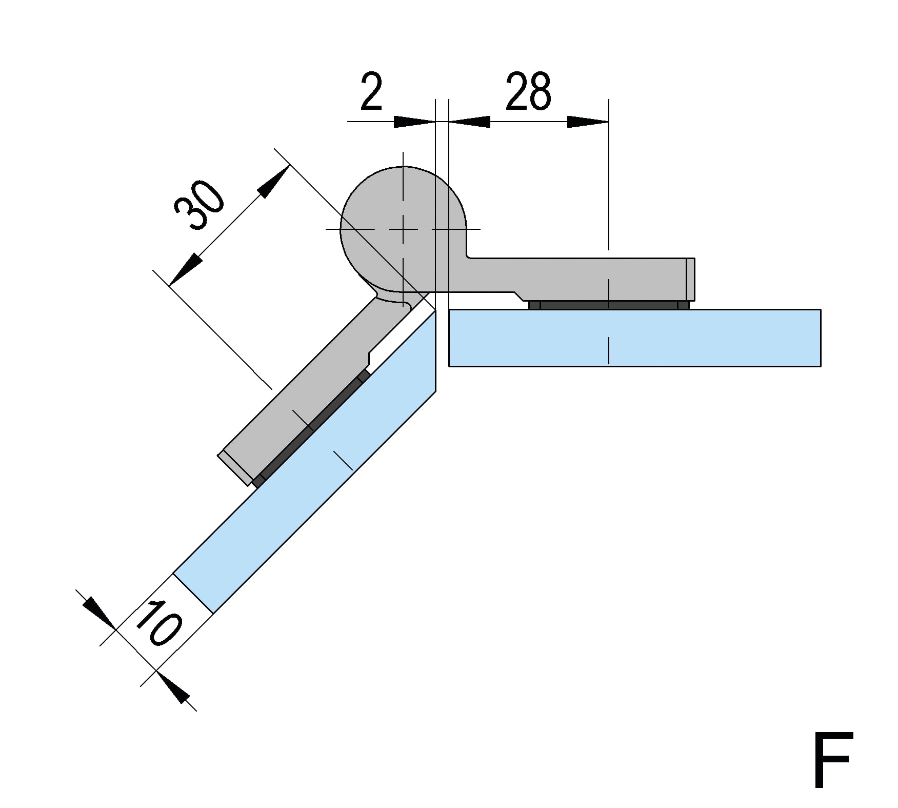Paumelle pour porte de douche Arta FM, verre-verre 135-180°