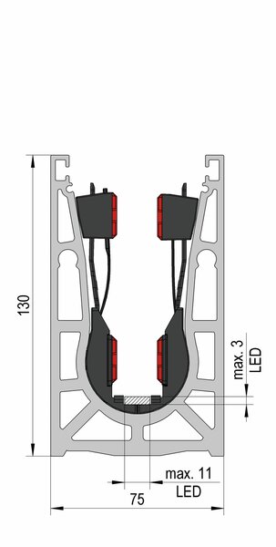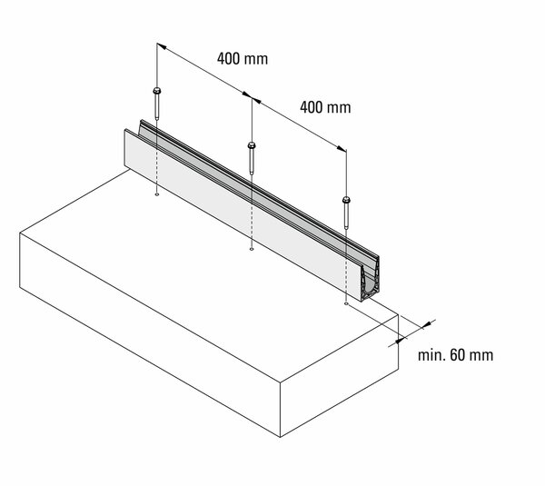 Le profilé de sol VetroMount® U pour le montage au sol se distingue par son aspect qualitatif. Pour fixer le profilé, il suffit de respecter un écart de 400 mm maximum entre les vis, en fonction des exigences statiques. Grâce à l'utilisation de vis à béton, il n'est pas nécessaire d'utiliser des chevilles à expansion.
