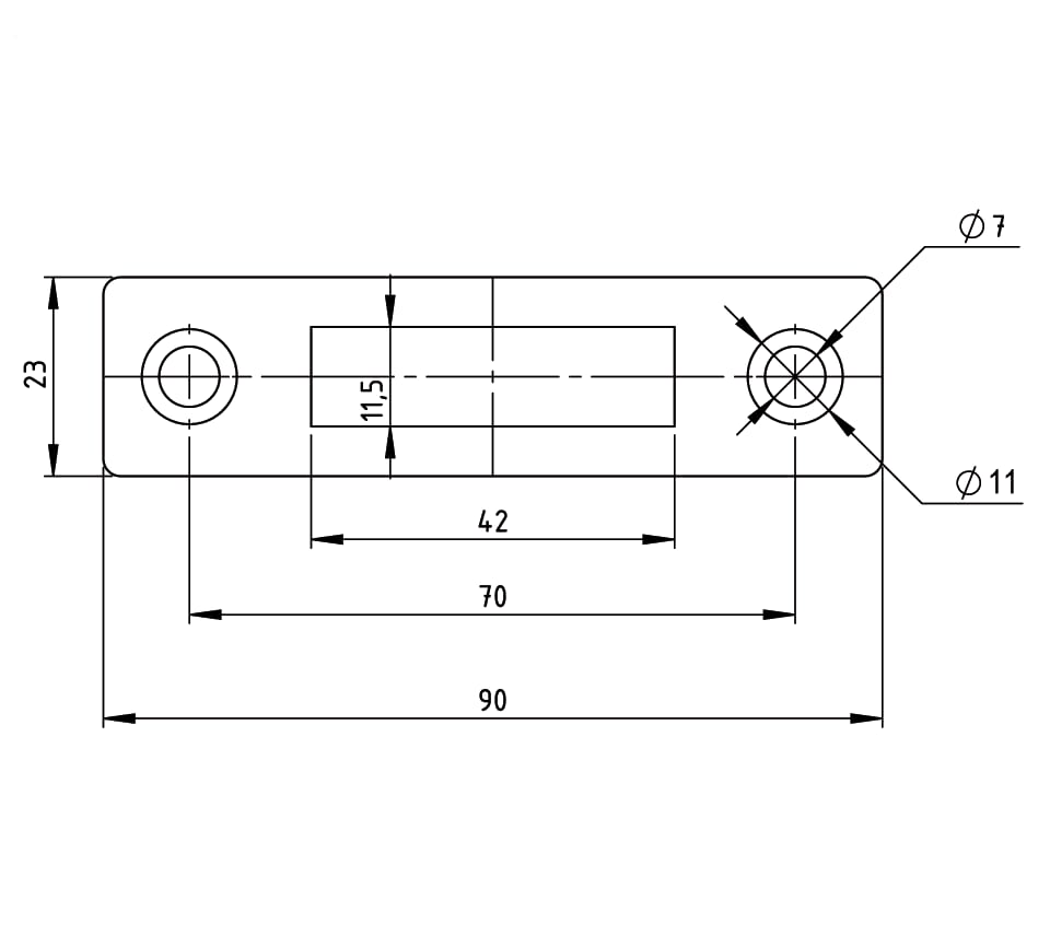 Serrure d'angle US 10, pêne plat, cylindre profilé