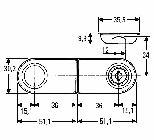 Equerre de fermeture incluse. Clé de rechange BO 5206432. Perçage du verre 26 mm