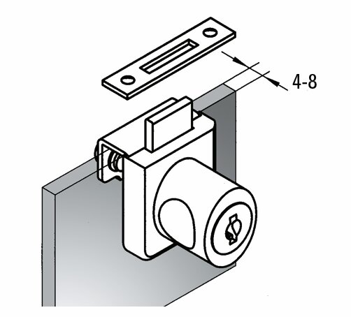 Les serrures de portes en verre à pincer sont glissées sur un bord de verre libre et fixées au moyen de vis. Si nécessaire, elles peuvent être installées ultérieurement sans problème et sans usinage du verre. La gâche et la protection du verre correspondantes font partie de la livraison.