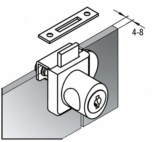Les serrures de portes en verre à pincer sont glissées sur un bord de verre libre et fixées au moyen de vis. Si nécessaire, elles peuvent être installées ultérieurement sans problème et sans usinage du verre. La gâche et la protection du verre correspondantes font partie de la livraison.