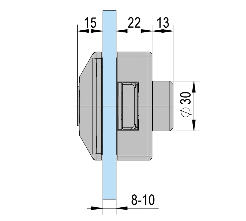 En cas d'utilisation des serrures avec du verre feuilleté, nous recommandons d'utiliser un film neutre en termes de pression et de coller en plus les serrures et les paumelles sur le verre. Pour une porte à deux battants, veuillez utiliser un arrêt pour le battant souhaité. Nous ne pouvons pas recommander l'utilisation des serrures et des ferrures dans les piscines et les bains d'eau salée