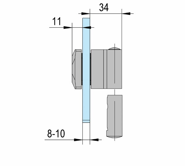En cas d'utilisation des paumelles avec du verre de sécurité feuilleté, nous recommandons d'utiliser un film neutre en termes de pression et de coller en plus les paumelles sur le verre Nous ne pouvons pas recommander l'utilisation des serrures et des paumelles dans les piscines et les bains d'eau salée.