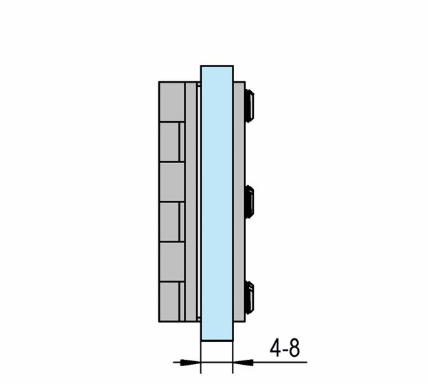 Bisagras de latón Vitreasy para muebles que facilitan la fijación de puertas de vidrio, p. ej., a paneles laterales de madera de vitrinas o armarios. Disponibles en diferentes tamaños, con y sin procesado del vidrio.