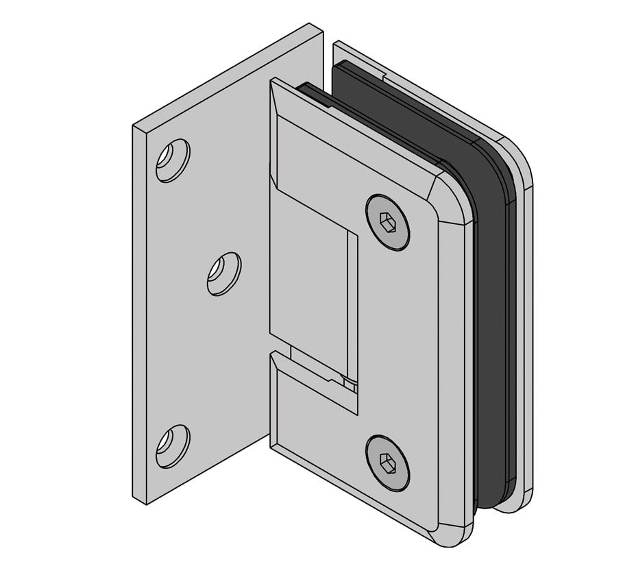 La paumelle de porte de douche va-et-vient Barcelona verre-mur 90° a une capacité de charge de 36 kg. Elle permet de réaliser des portes jusqu'à 0,9 x 2 m. Les paumelles verre-mur 90° avec raccordement mural d'un côté conviennent aux douches à angle droit et aux douches en niche