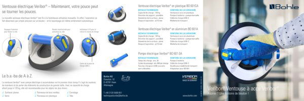 Bohle AG est le seul fabricant à proposer une pompe électrique à accumulateur pour équiper ultérieurement les ventouses manuelles de la marque Veribor®. Quelques manipulations suffisent pour passer à la technologie à accumulateur, plus confortable et plus efficace.