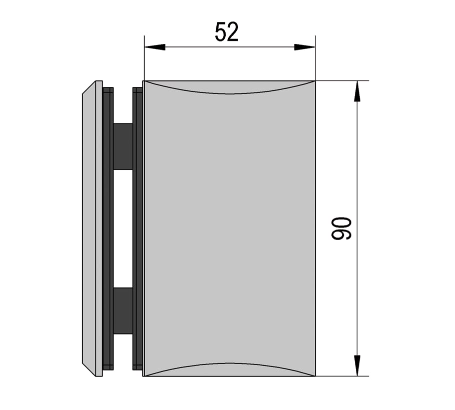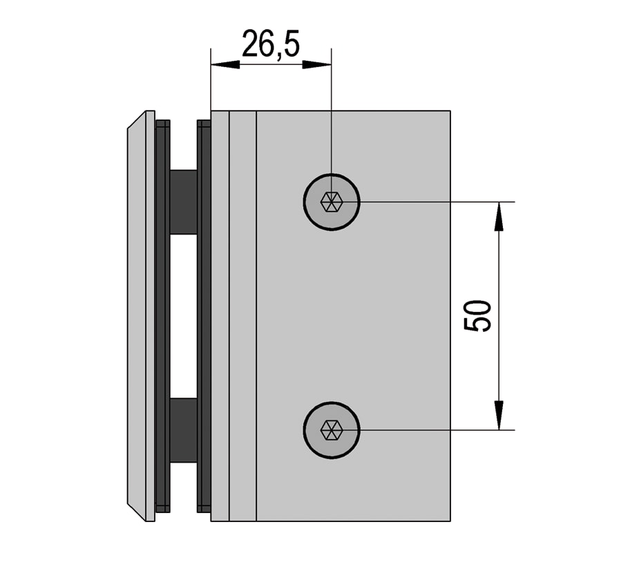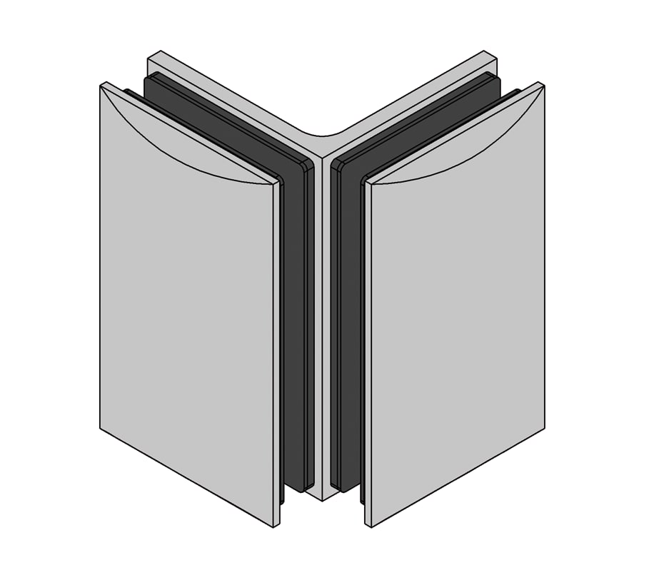 Connettore angolare vetro-vetro90° per collegare due pannelli laterali in vetro ad angolo retto tra loro. Sono necessari solo i fori sulle lastre di vetro.