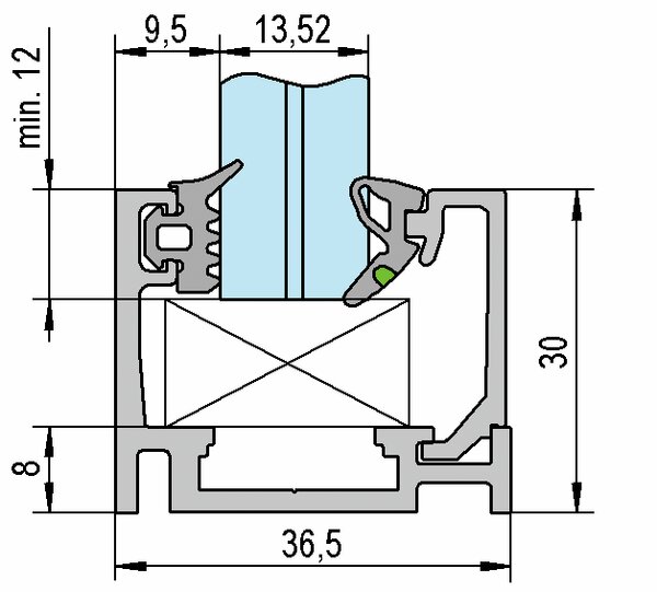 Guarnizioni di alta qualità per vetri a secco che rendono superfluo il silicone. La guarnizione a cuneo fissa la lastra in modo sicuro e stabile nel profilo del vetro e del telaio.