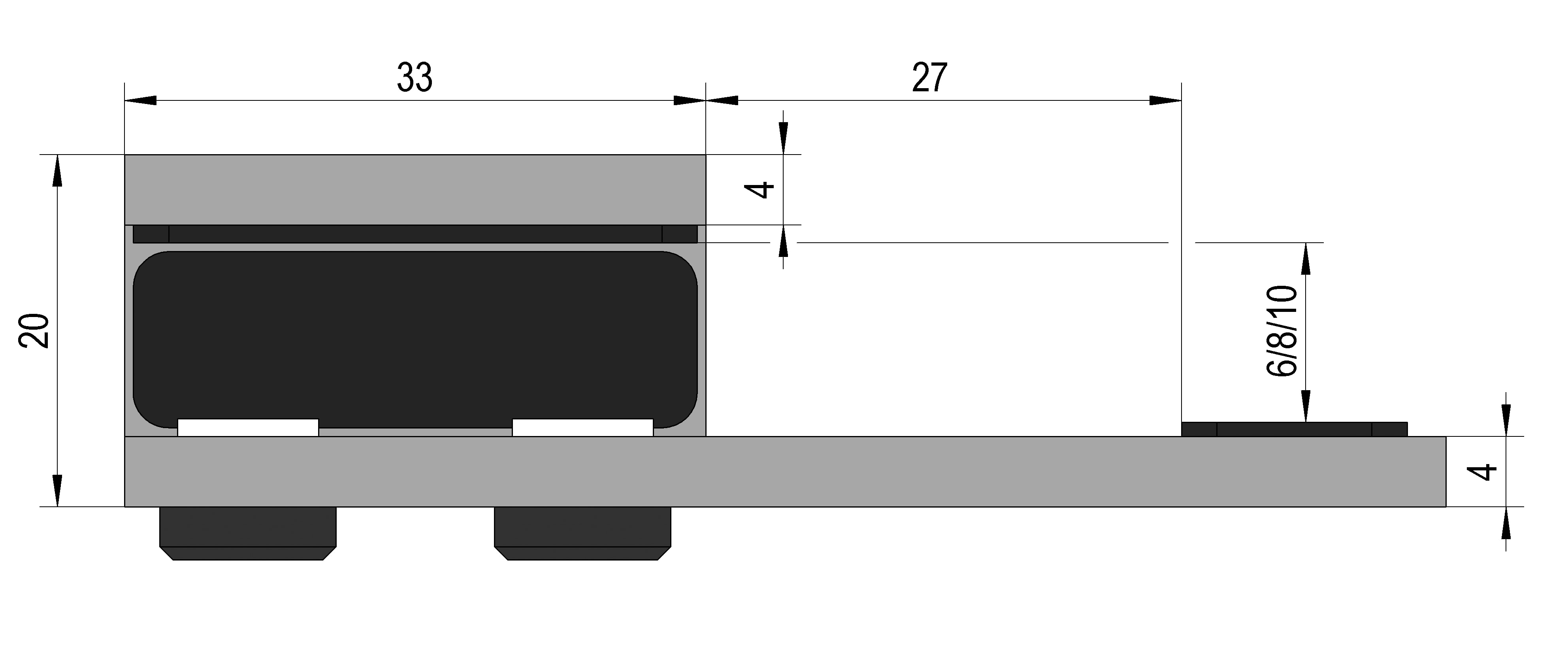 I fermaporta per l'adattamento vetro-vetro 180° sono fissati sul bordo superiore del vetro del pannello laterale fisso. Impediscono che la porta si apra o venga spinta in una direzione. Disponibili nelle superfici abbinate a tutte le nostre serie di porte doccia.