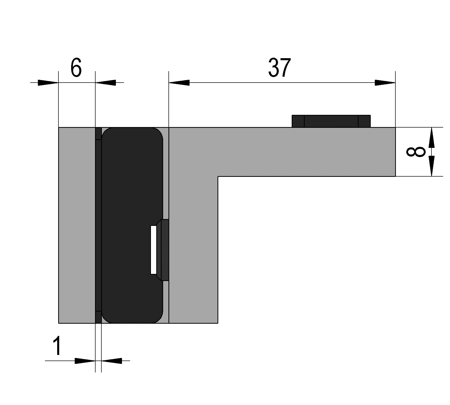 I fermaporta per l'installazione a posteriori di vetri a 90° sono fissati sul bordo superiore del vetro del pannello laterale fisso. Impediscono che la porta venga spinta in una direzione.