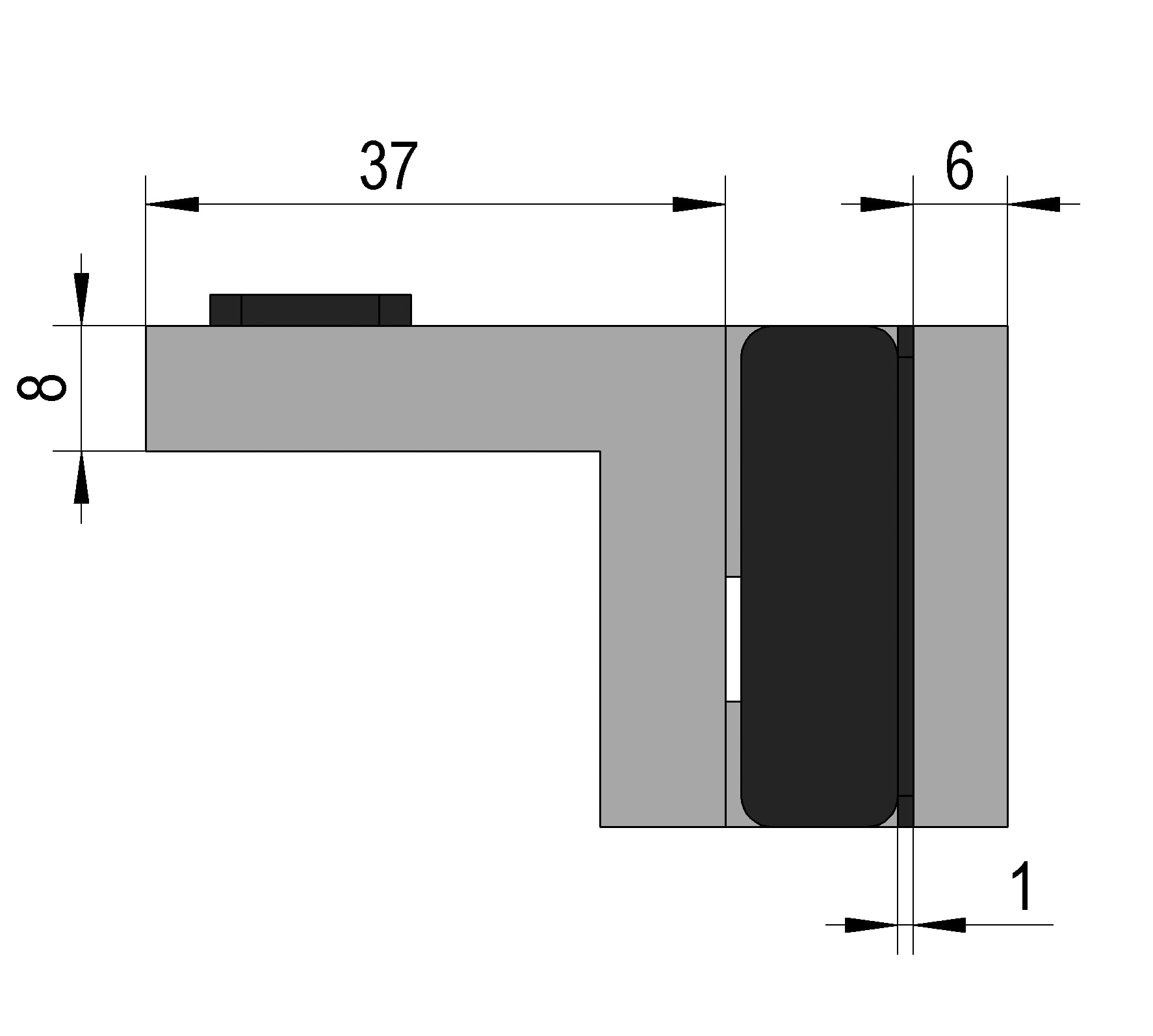 I fermaporta per l'installazione a posteriori di vetri a 90° sono fissati sul bordo superiore del vetro del pannello laterale fisso. Impediscono che la porta venga spinta in una direzione.