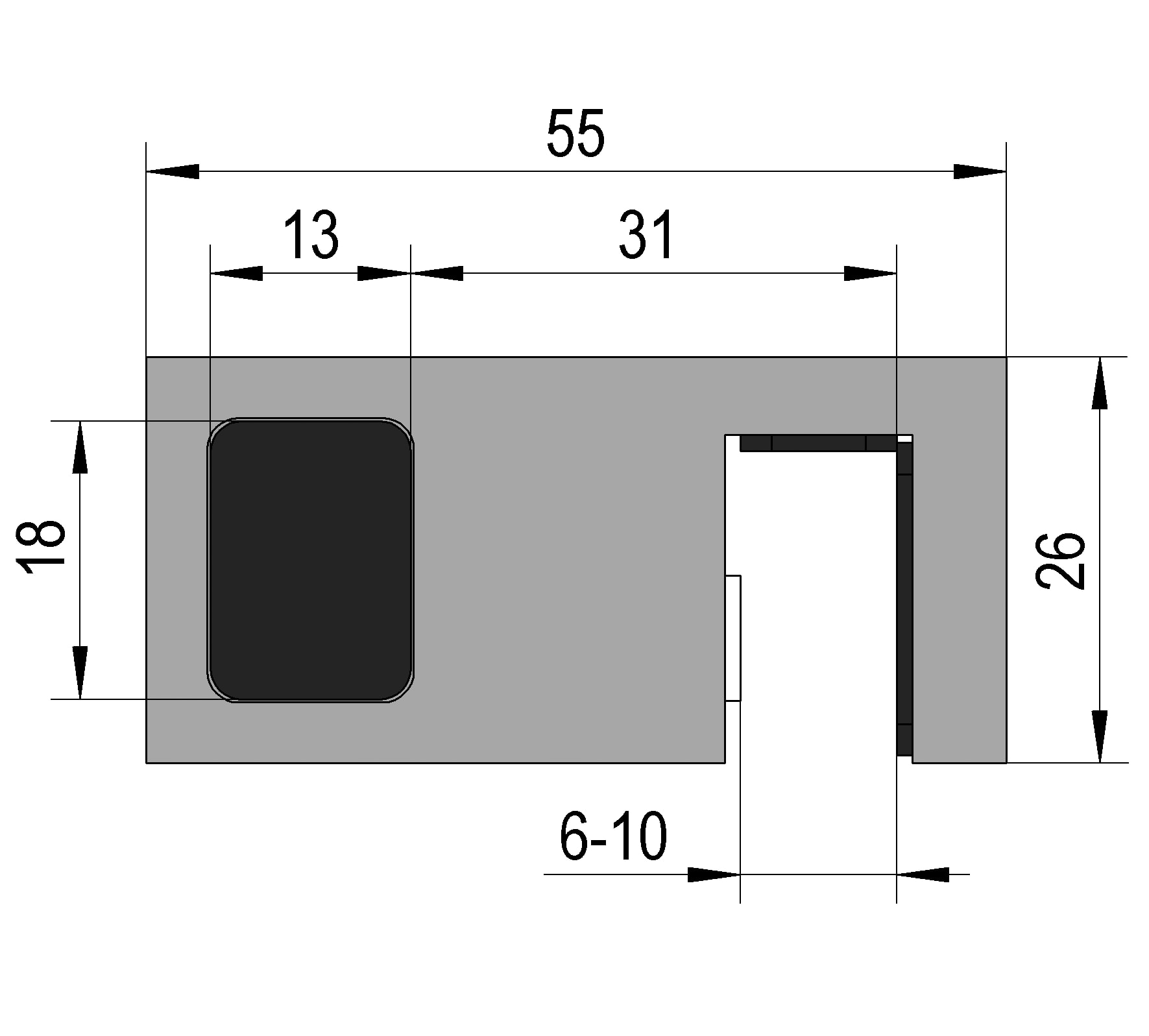L'adattamento a diversi spessori di vetro non si ottiene con tamponi di arresto di diverso spessore, ma cambiando la posizione di montaggio sul pannello laterale.