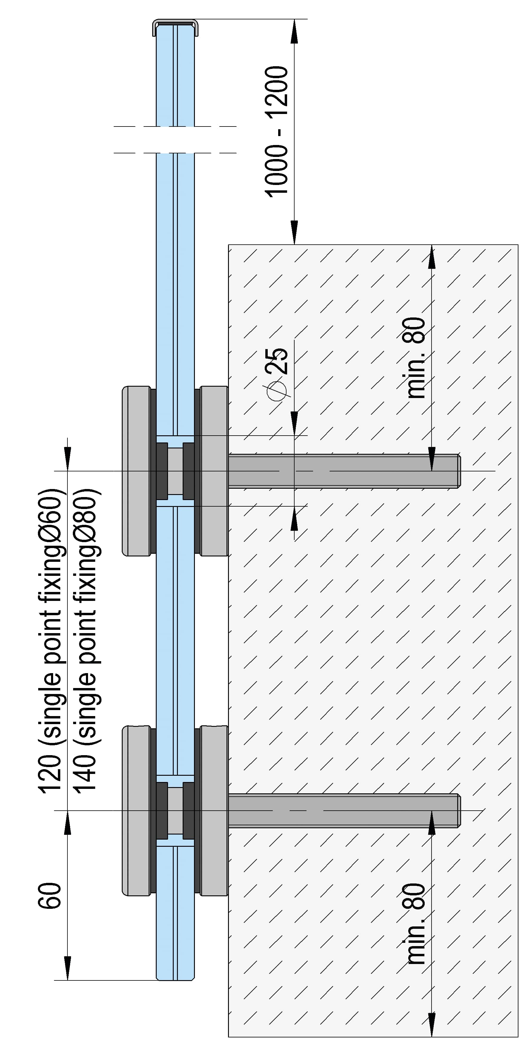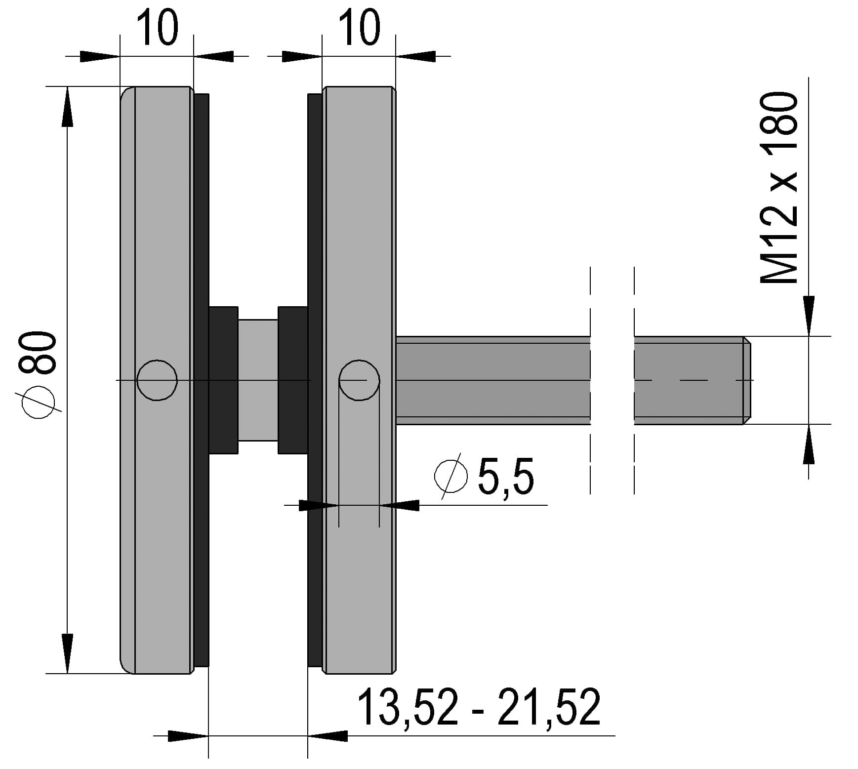 Fissaggio puntuale ø 80 mm con asta filettata, L=195 mm