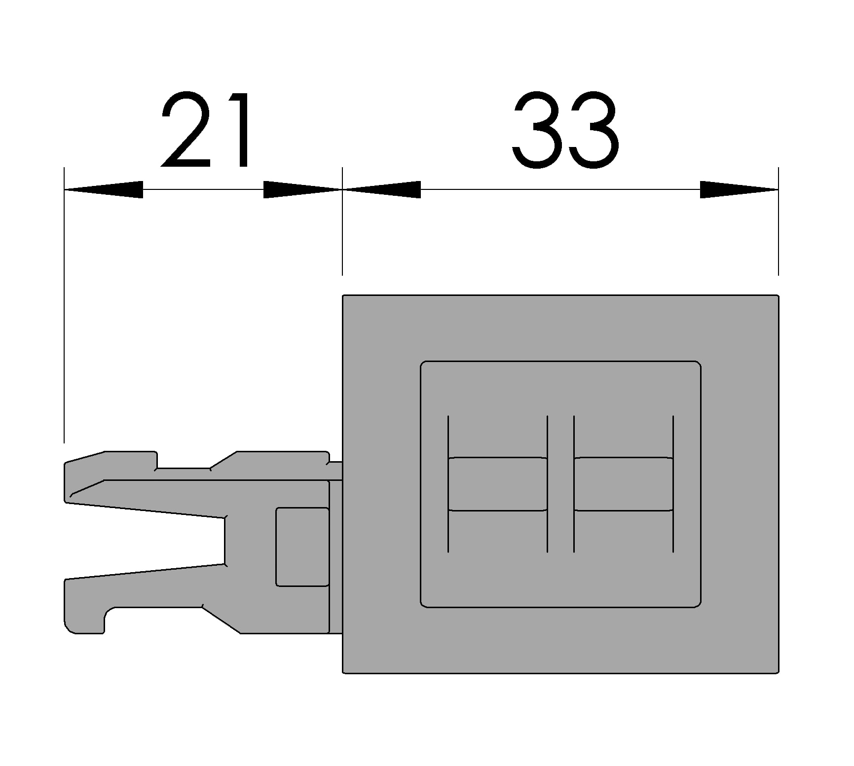 Questa maniglia può essere utilizzata a destra e a sinistra. Viene inserita sul lato del profilo di scorrimento e costituisce l'estremità di una porta scorrevole.