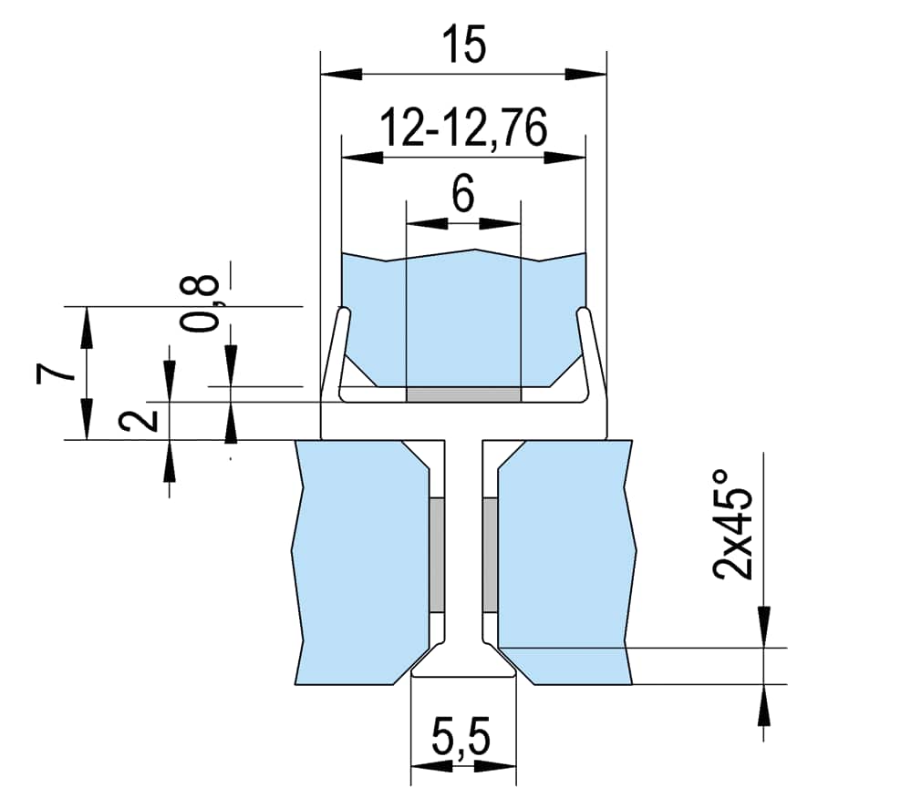 Per creare le condizioni ideali di applicazione, il vetro deve avere un bordo piatto e levigato e un'inclinazione di 45°. Consultare le schede tecniche.
