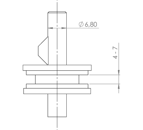 Serratura a spinta per impedire l'apertura non autorizzata delle ante scorrevoli in vetro di mobili e vetrine. Per l'installazione è sufficiente un semplice foro per il vetro