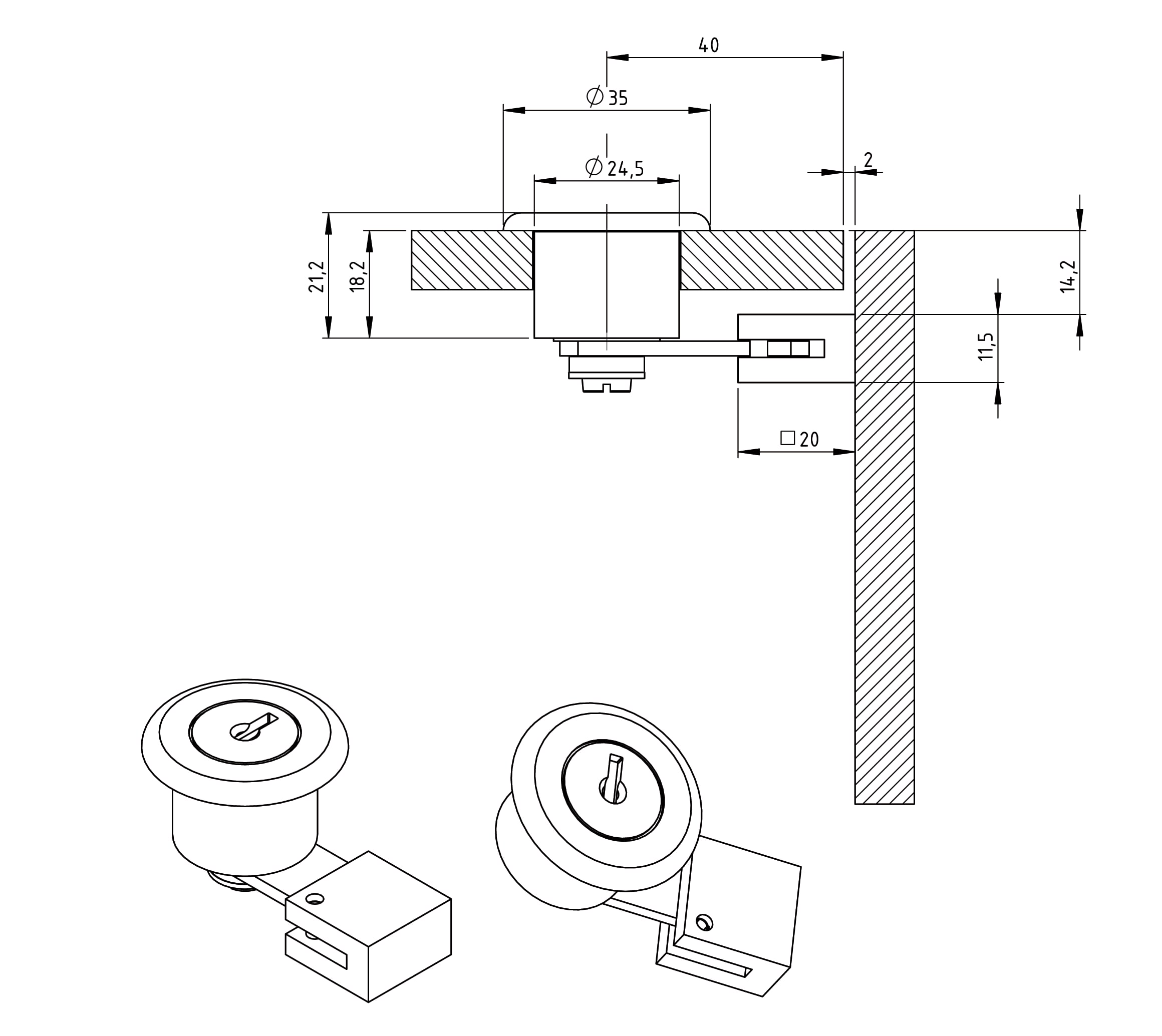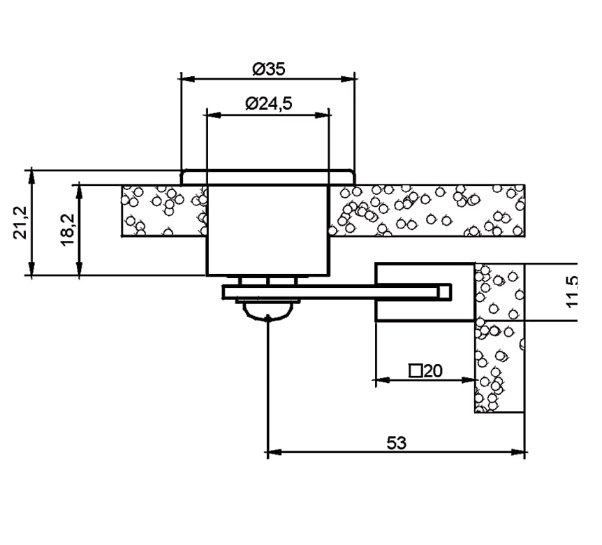 Per l'incollaggio sul vetro di sicurezza temprato è necessario utilizzare Pyrosil®. È richiesto un foro nel vetro di 25 mm
