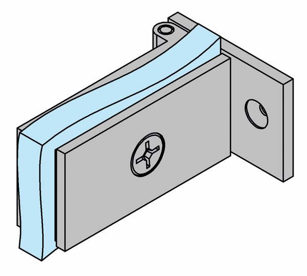 Cerniere per mobili Vitreasy in ottone per fissare facilmente ante in vetro, ad esempio, ai pannelli laterali in legno di vetrine o armadi. Disponibili in diverse misure, con e senza lavorazione del vetro.